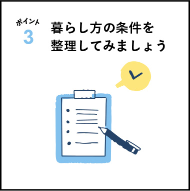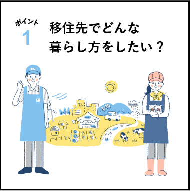 あなたの移住や二拠点生活に対する目的や条件を整理してみましょう。 目的や条件を整理することで、あなたに合ったライフスタイルや 地域についてイメージしやすくなるでしょう。