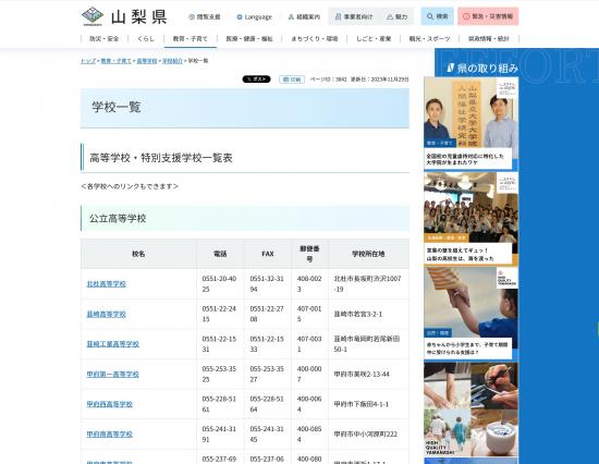 | 山梨県の私立学校の一覧や、各学校の情報、入試関連情報をまとめたサイトです。 |