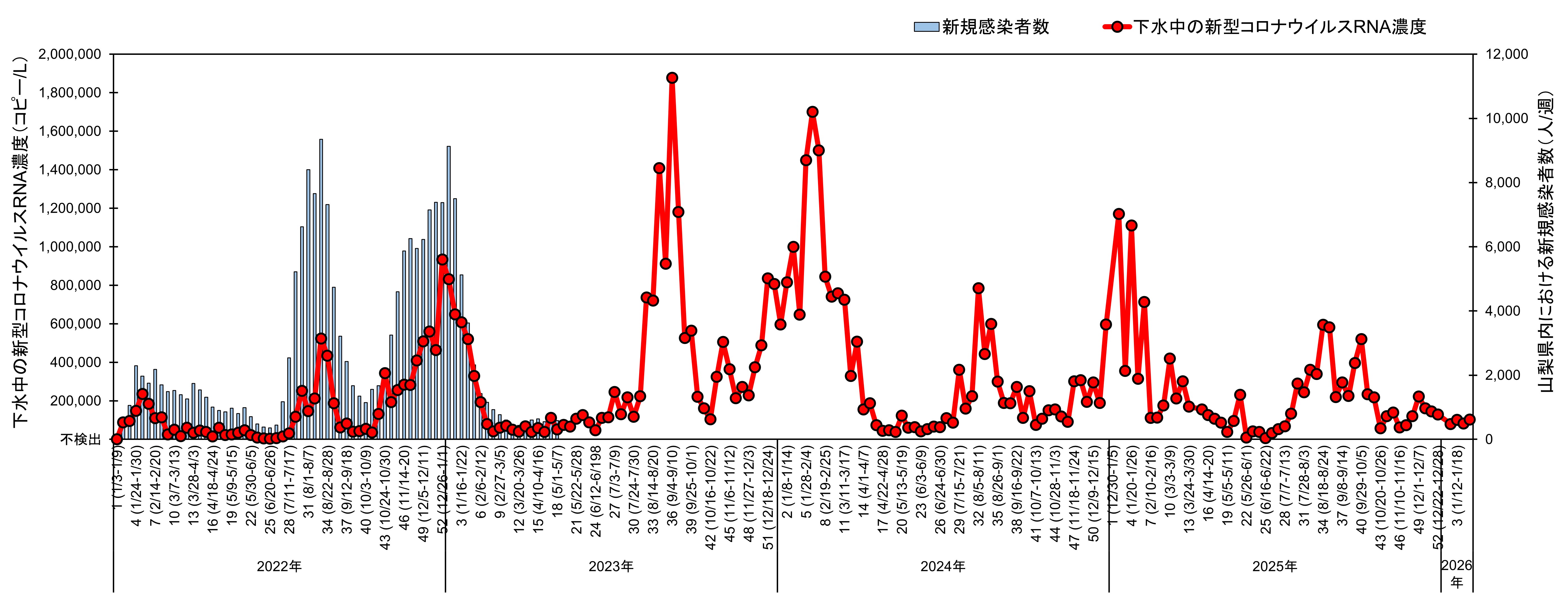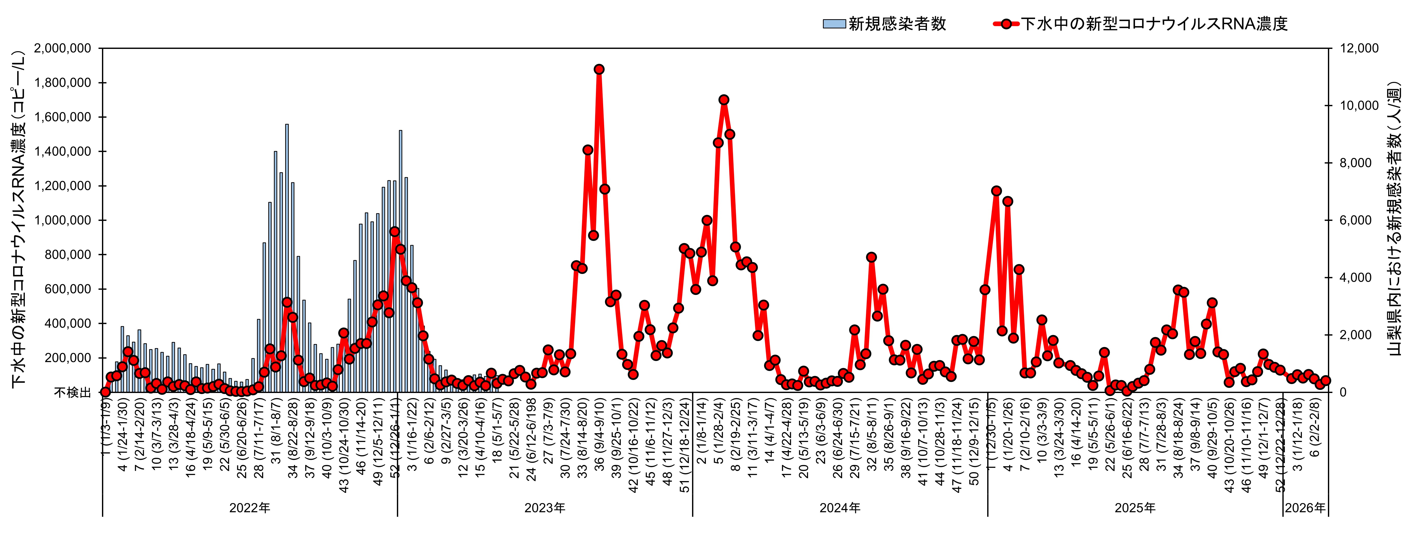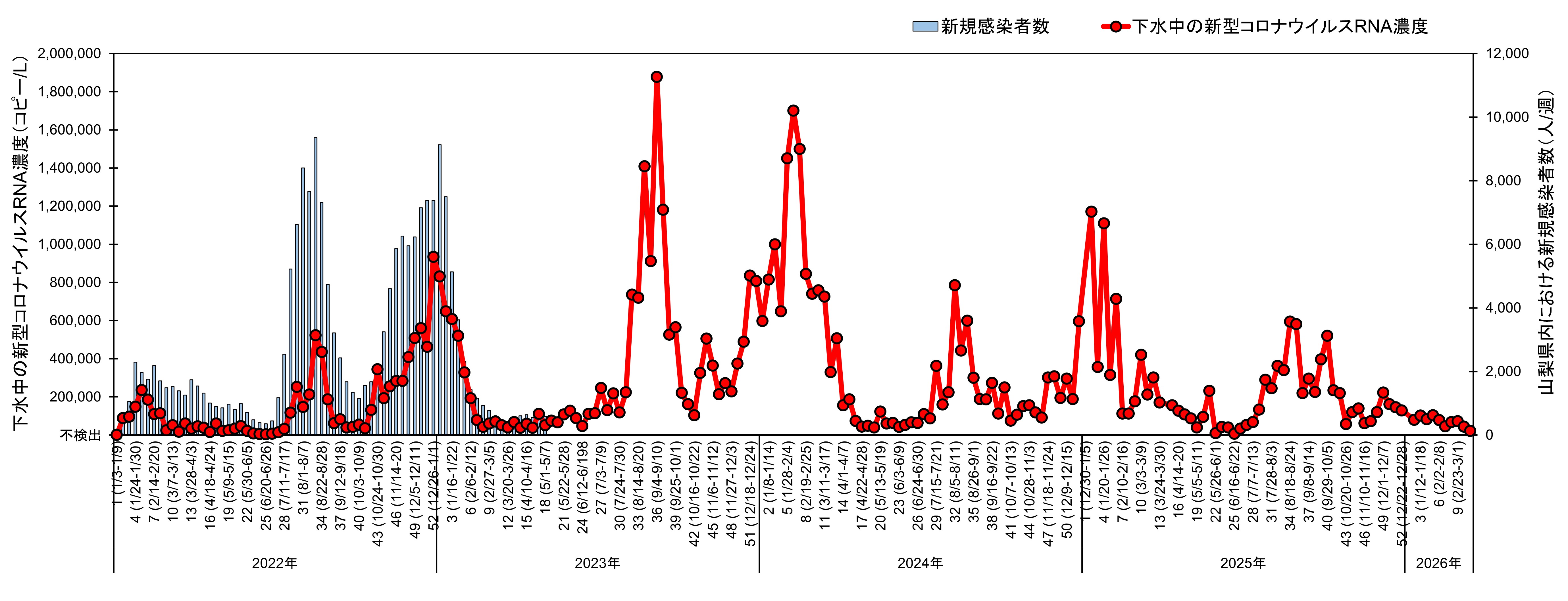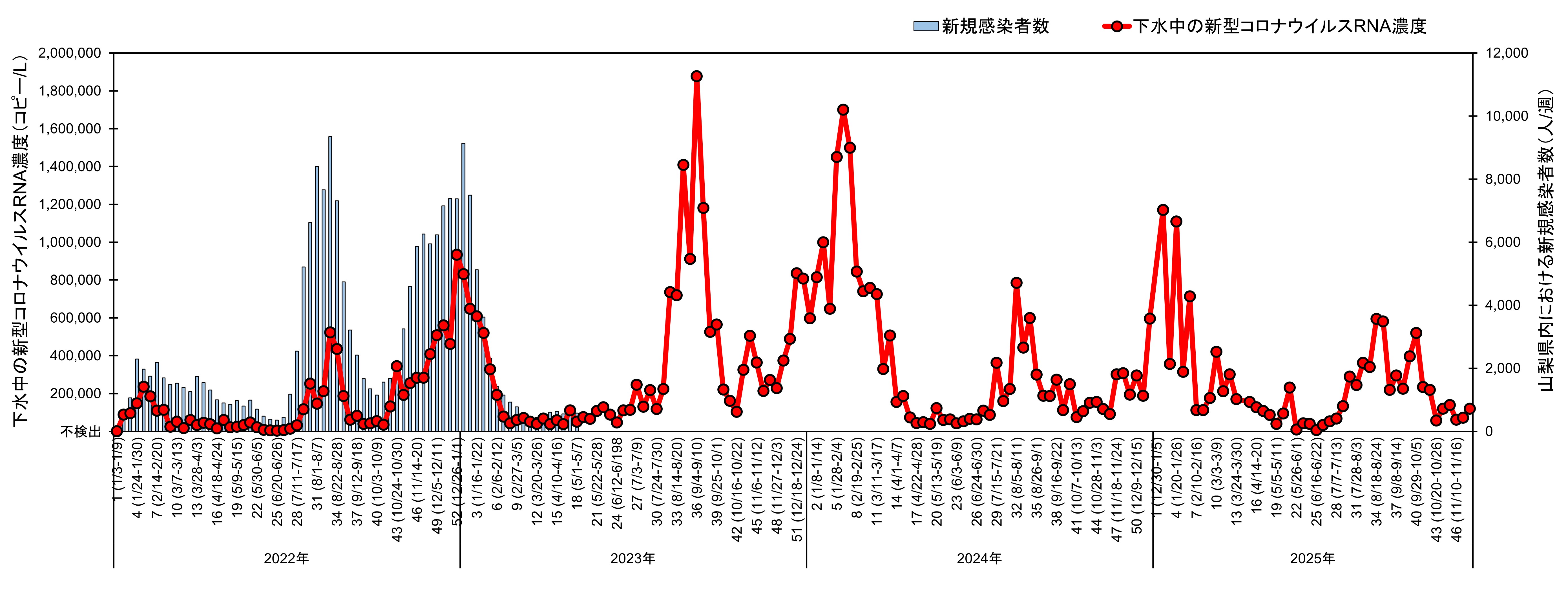 [2023年第45週以前のデータは山梨大学国際流域環境研究センター 原本英司教授提供]