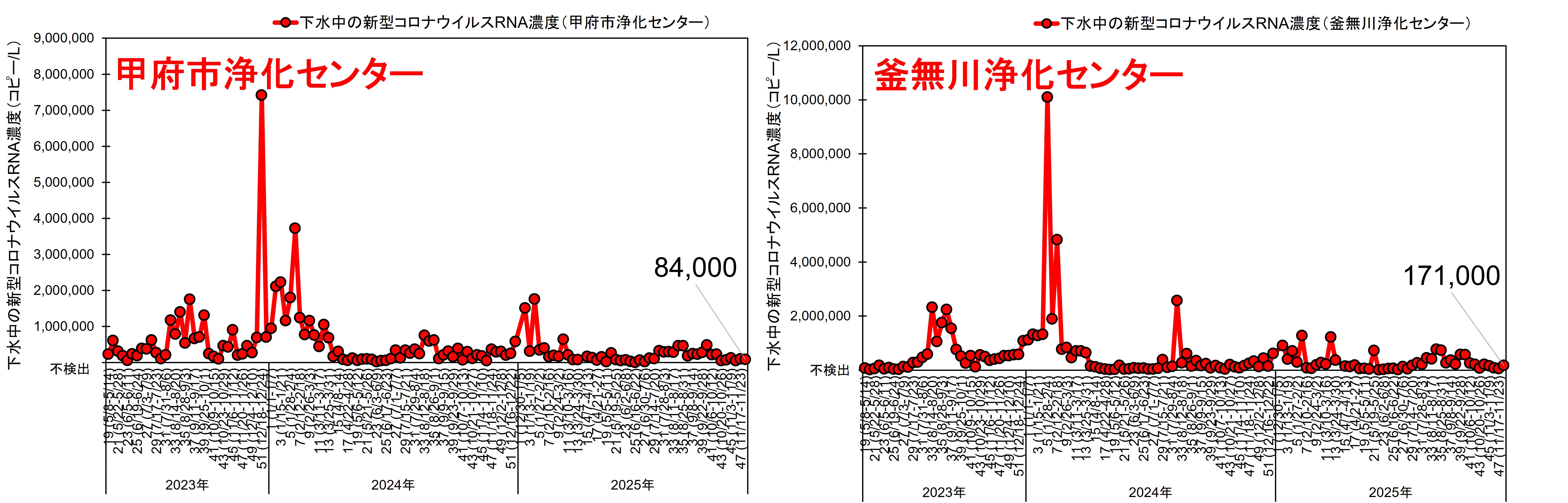 ・測定対象としているのはウイルスの遺伝物質(RNA)の一部であり、下水からの「検出」が必ずしも感染性ウイルスの存在を意味するものではありません。