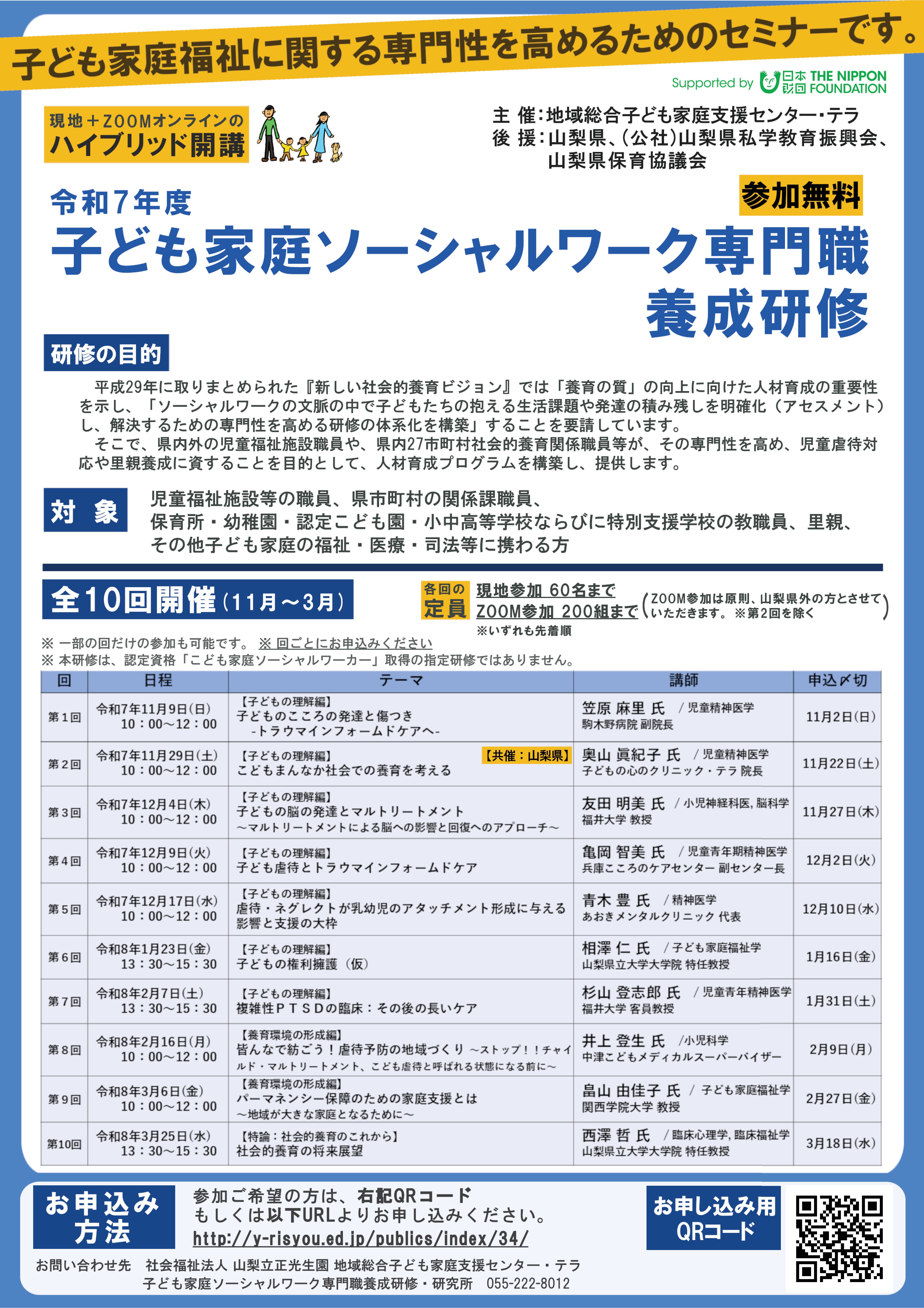 お問合せ先:社会福祉法人山梨立正光生園 地域総合子ども家庭支援センター・テラ