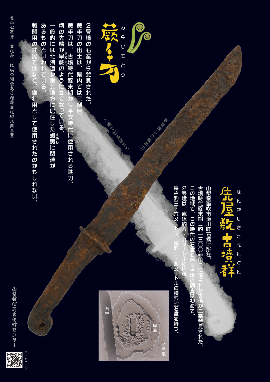 展示ならびにイベントに関するお問い合わせは、山梨県埋蔵文化財センター(電話:055-266-3016)にて承ります。