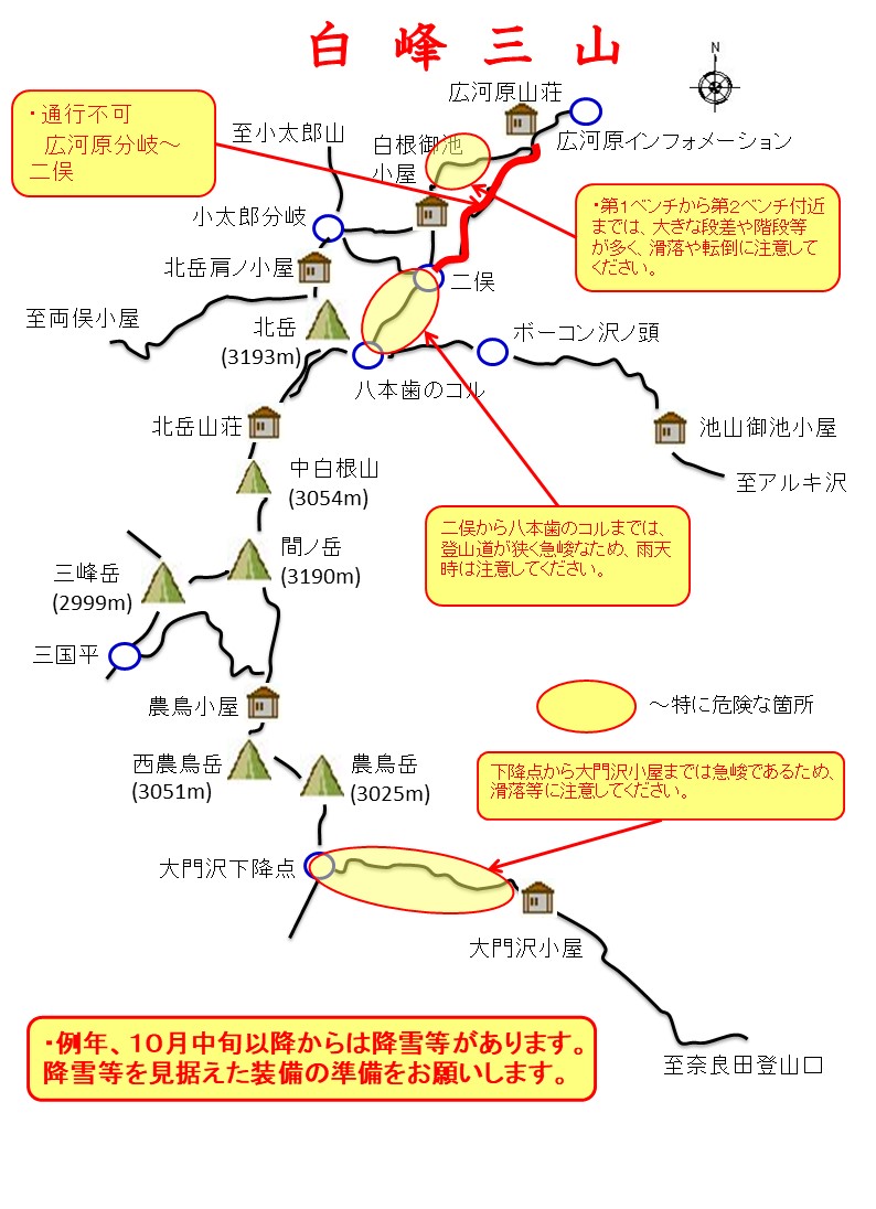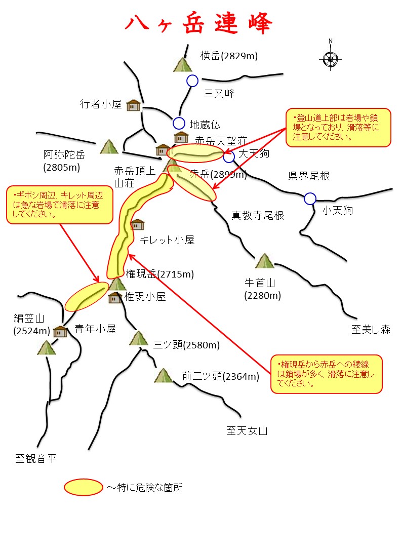 登山する際の参考にしていただき、危険箇所では十分足もと等に注意して下さい。
