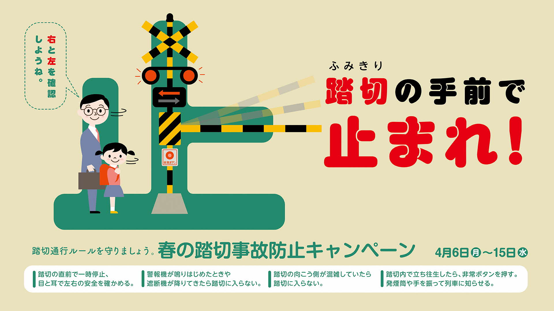 JR東海では、4月6日(日曜日)から4月15日(火曜日)の間、春の全国交通安全運動に合わせて、春の踏切事故防止キャンペーンを実施しております。