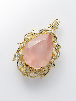 | ペンダント「桃夭の風」 〈デザイン〉 関戸 和代 〈制 作〉 清水 幸雄 株式会社シミズ貴石 深澤 利彦 錺工房深澤 |